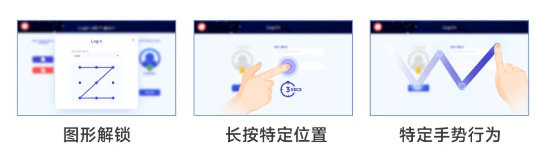 除了上述的刷卡/指紋登錄方式外,還有其它新穎的登錄方式能通過 JavaScript 實現(xiàn),如手機上常見的圖形解鎖,或是操作行為識別,像是通過長按特定位置或特定手勢行為以登錄人機系統(tǒng)。這些登錄方式跨越傳統(tǒng),為用戶帶來了更新穎的操作體驗。