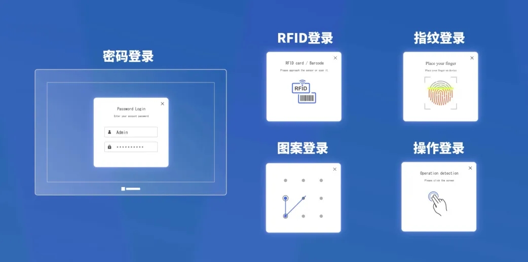 為了滿足市場需求,威綸通推出了多樣化的登錄方式,包括RFID刷卡、指紋識別和手勢滑動等,以提升身份驗證的安全性和用戶體驗感。