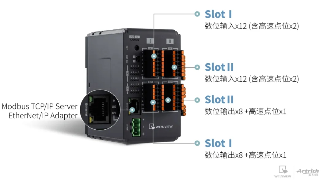 威綸通于2022年推出了 iR-ETN40R 可擴展式以太網遠程I/O模塊,結合cMT X系列HMI基于CODESYS的軟PLC功能,為市場提供了簡單而又易于整合的自動控制解決方案。為進一步滿足高速輸出的需求,我們推出了支持高速輸出點位的 iR-ETN40P。